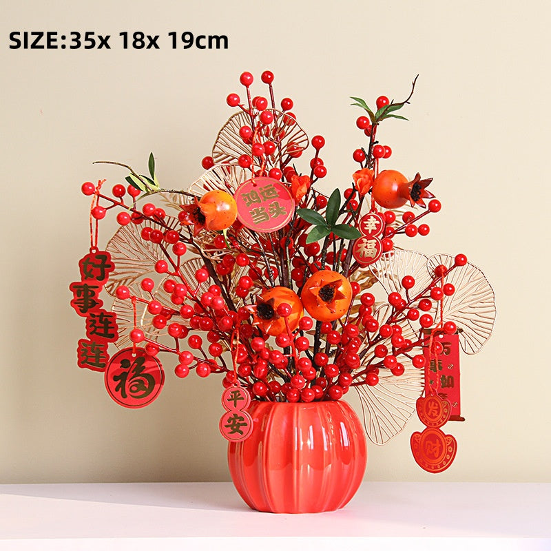 A rich red berry and gold-accented arrangement, bringing warmth and sophistication to refined seasonal or year-round interior decor.