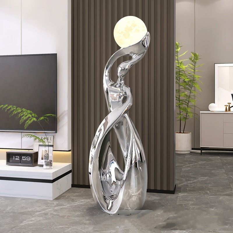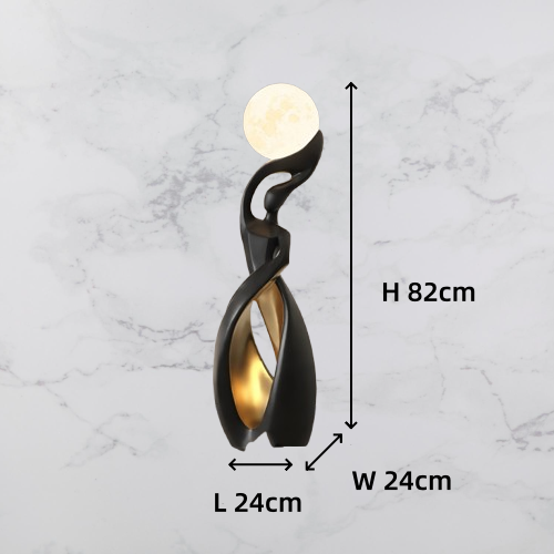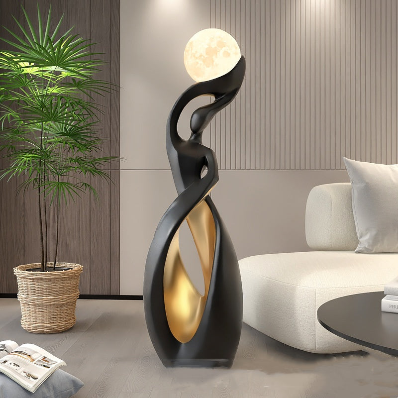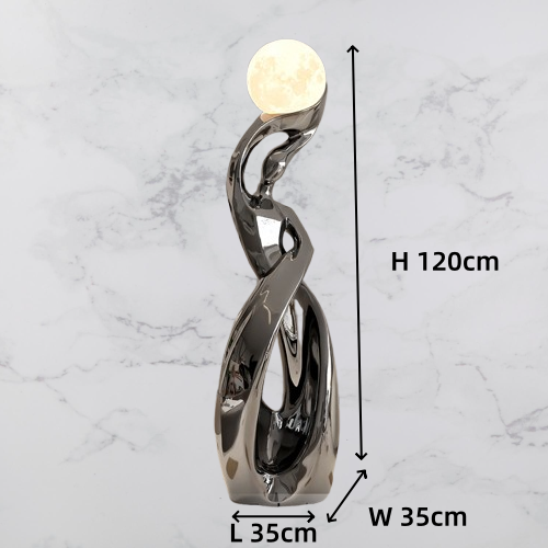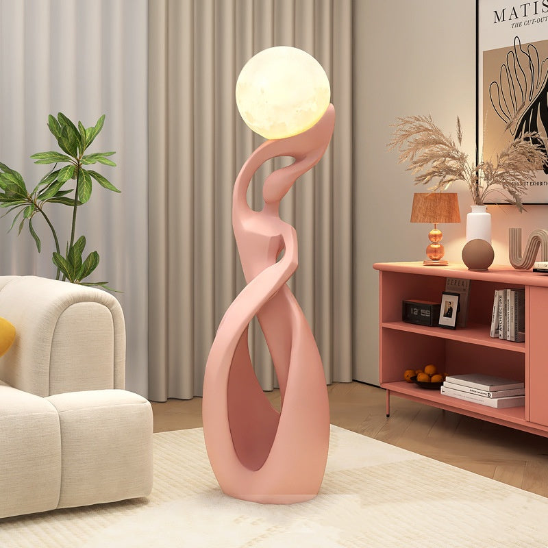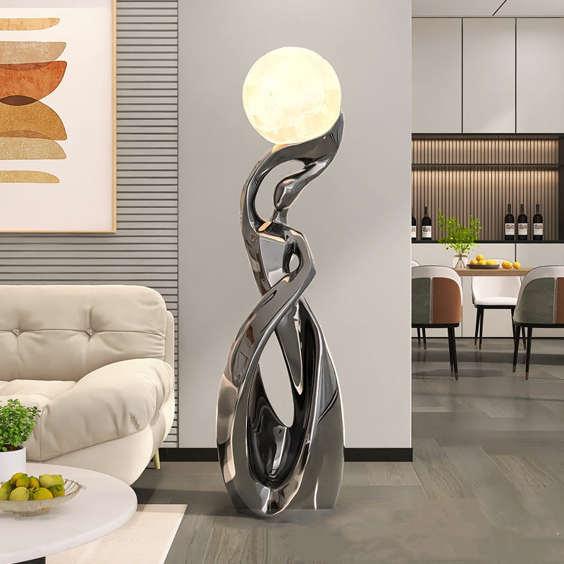 A tall and graceful abstract floor lamp that blends sculptural artistry with soft illumination.