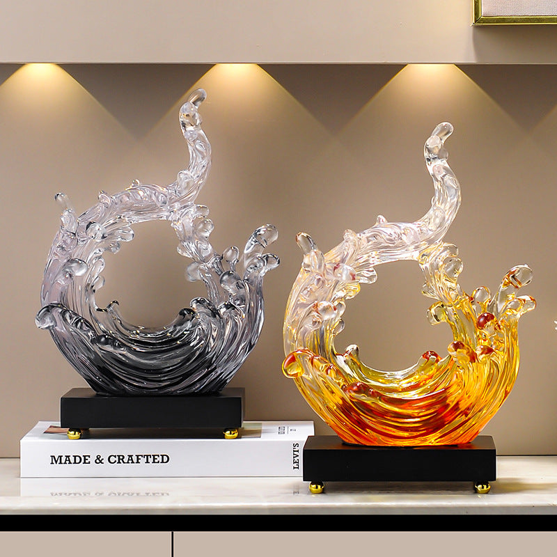 Inspired by the flowing strength of ocean waves, this modern sculpture embodies prosperity and elegance.