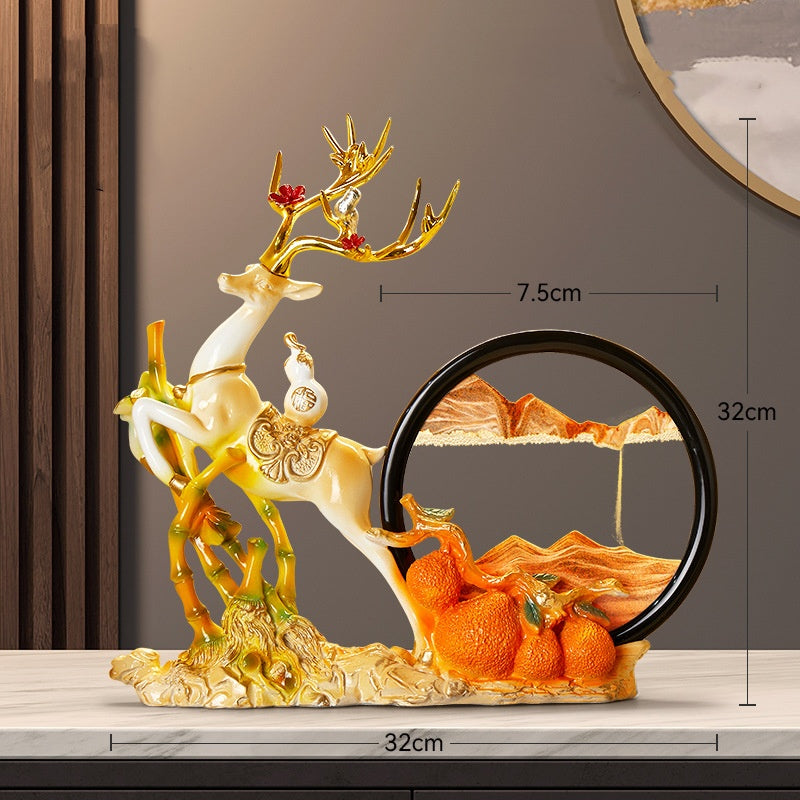 An elegant deer-themed sand art piece symbolizing prosperity, combining motion and luxury for a refined, modern decorative accent.